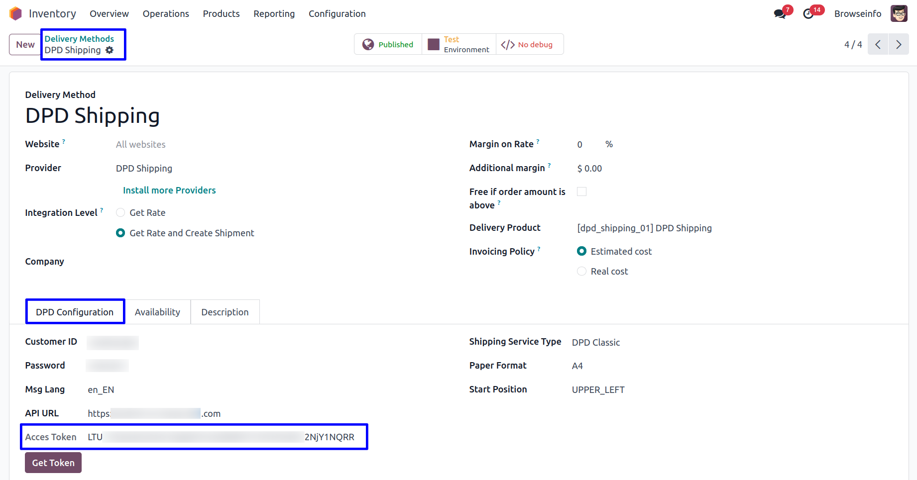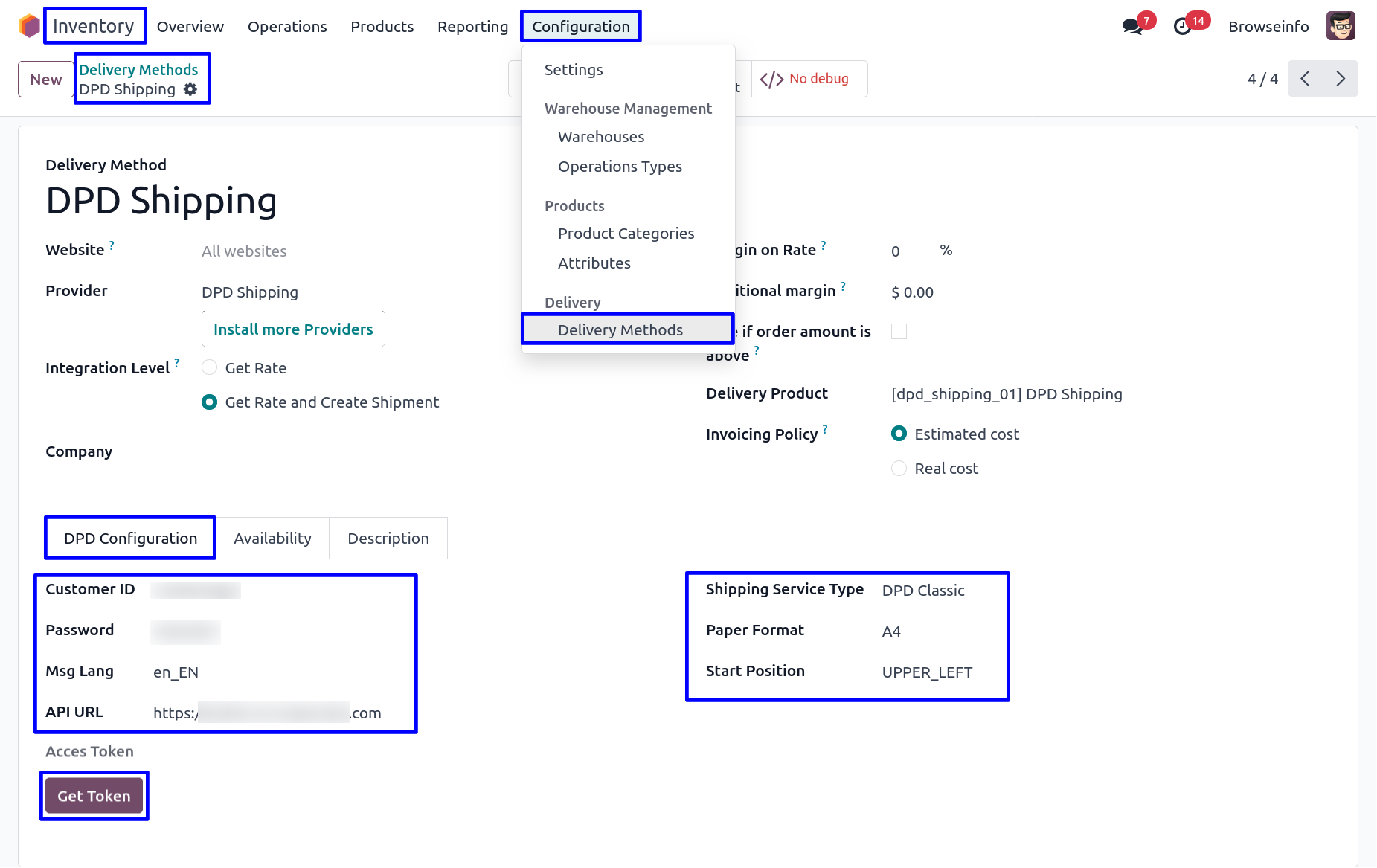 User need to enter Customer ID, Password, API URL and need to select the Shipping Service Type, Paper Format, Start Position and click on "Get Token" button.