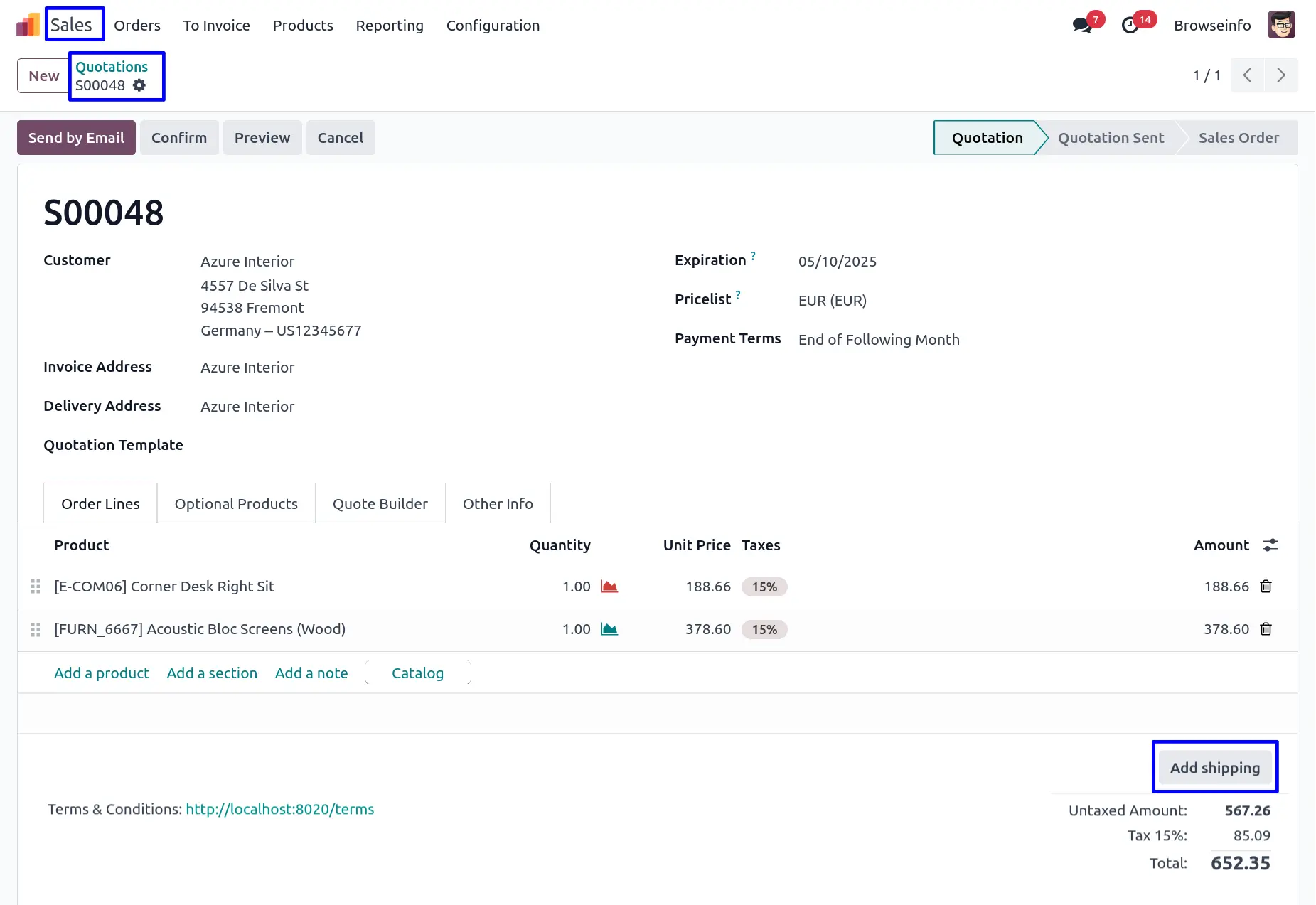 Create Sale Order and Add Shipping