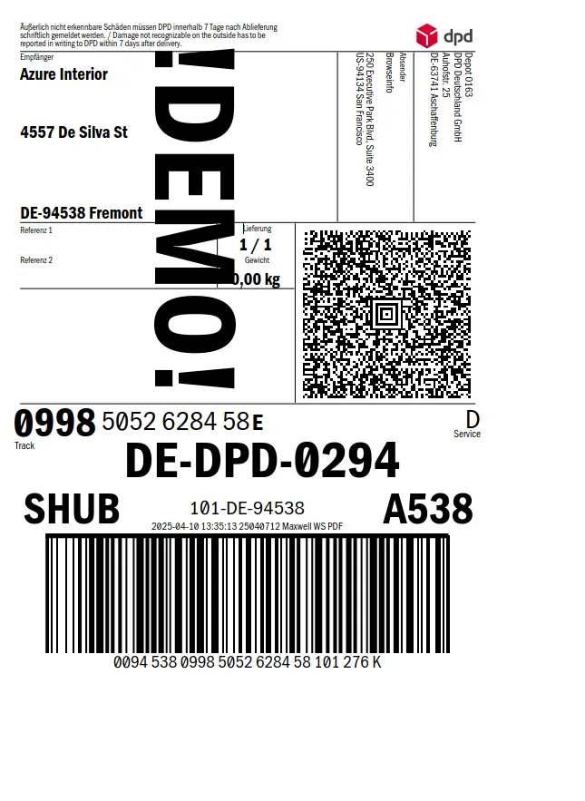 DPD Shipping Connector Label