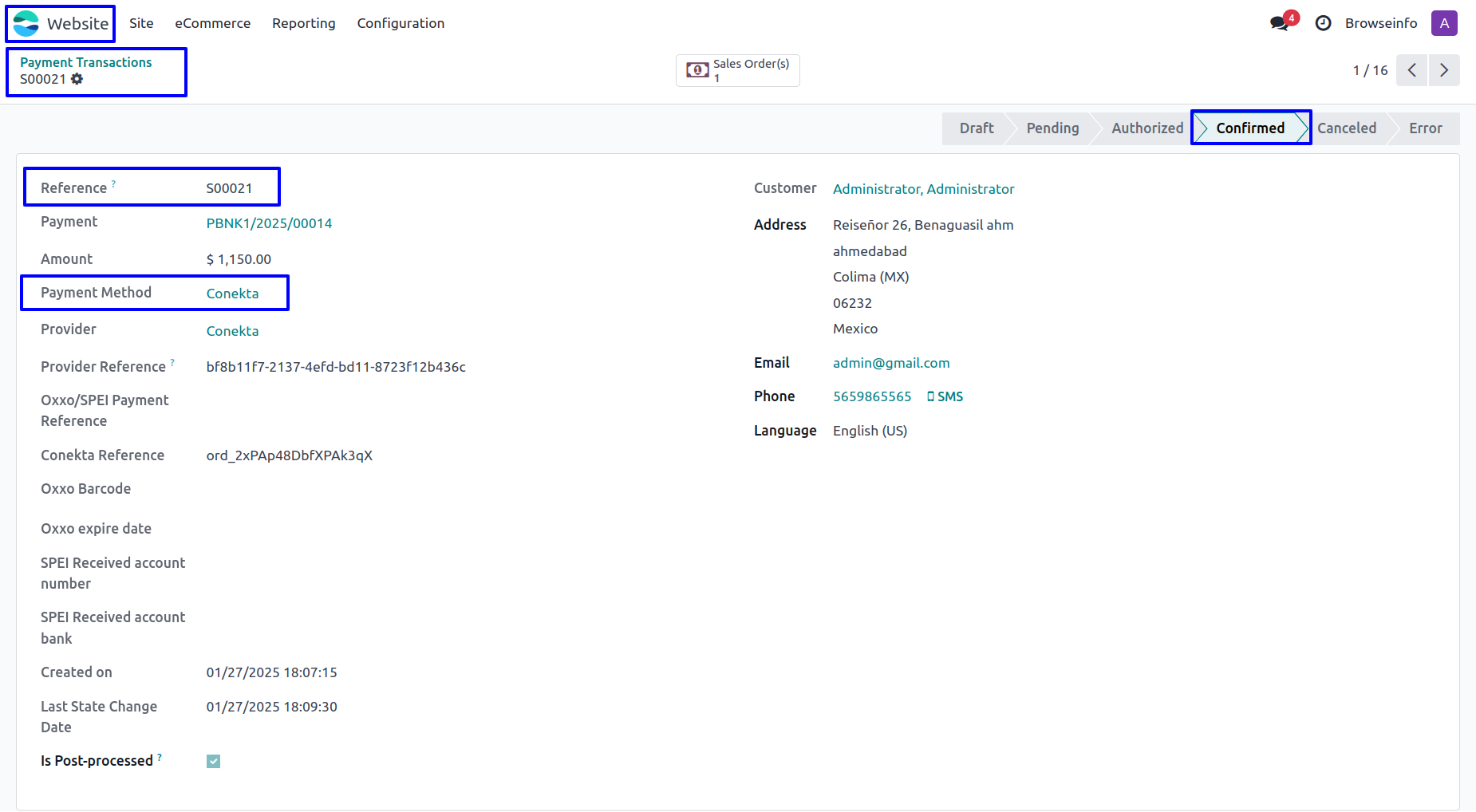 User can see Conekta payment has been successfully processed and payment transactions done.