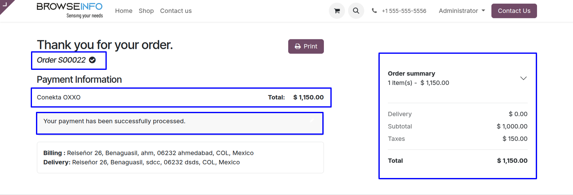 User can see Conekta OXXO payment has been successfully processed and payment transactions done.