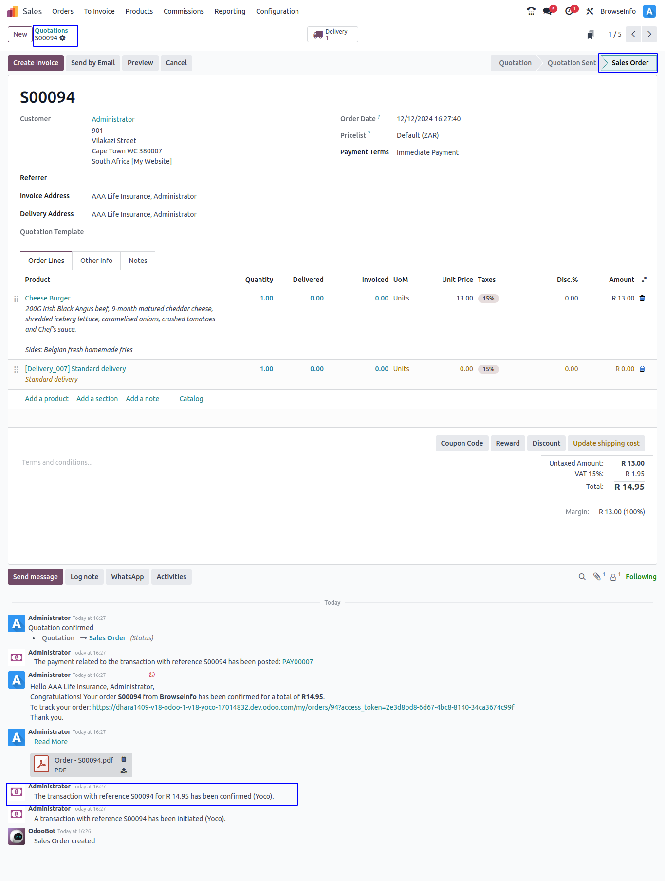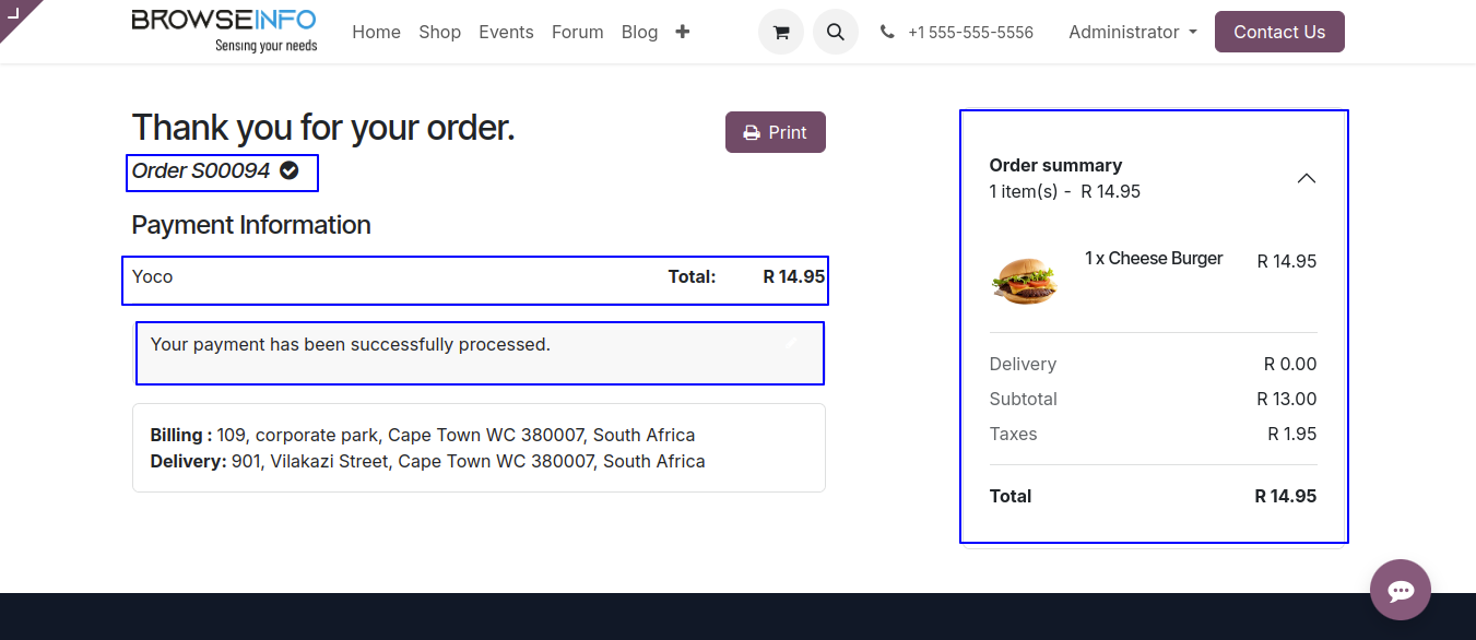 You can see YOCO payment has been successfully processed and payment transactions done.