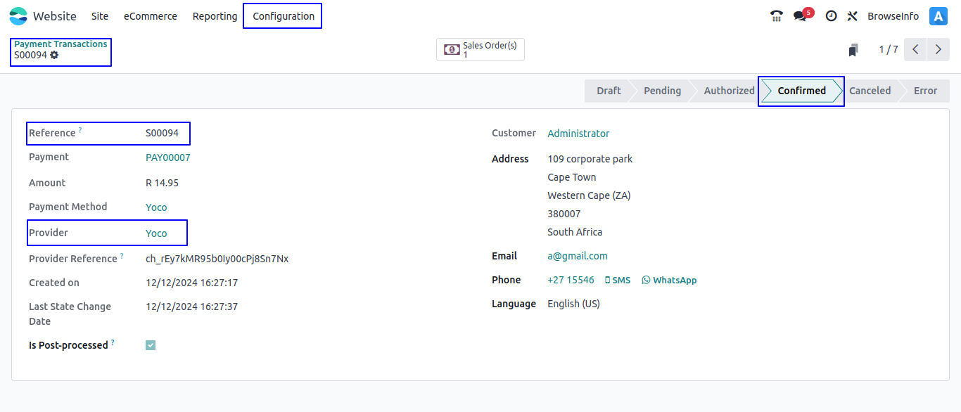 Allow customers to make secure online payments through Yoco on your Odoo eCommerce platform.