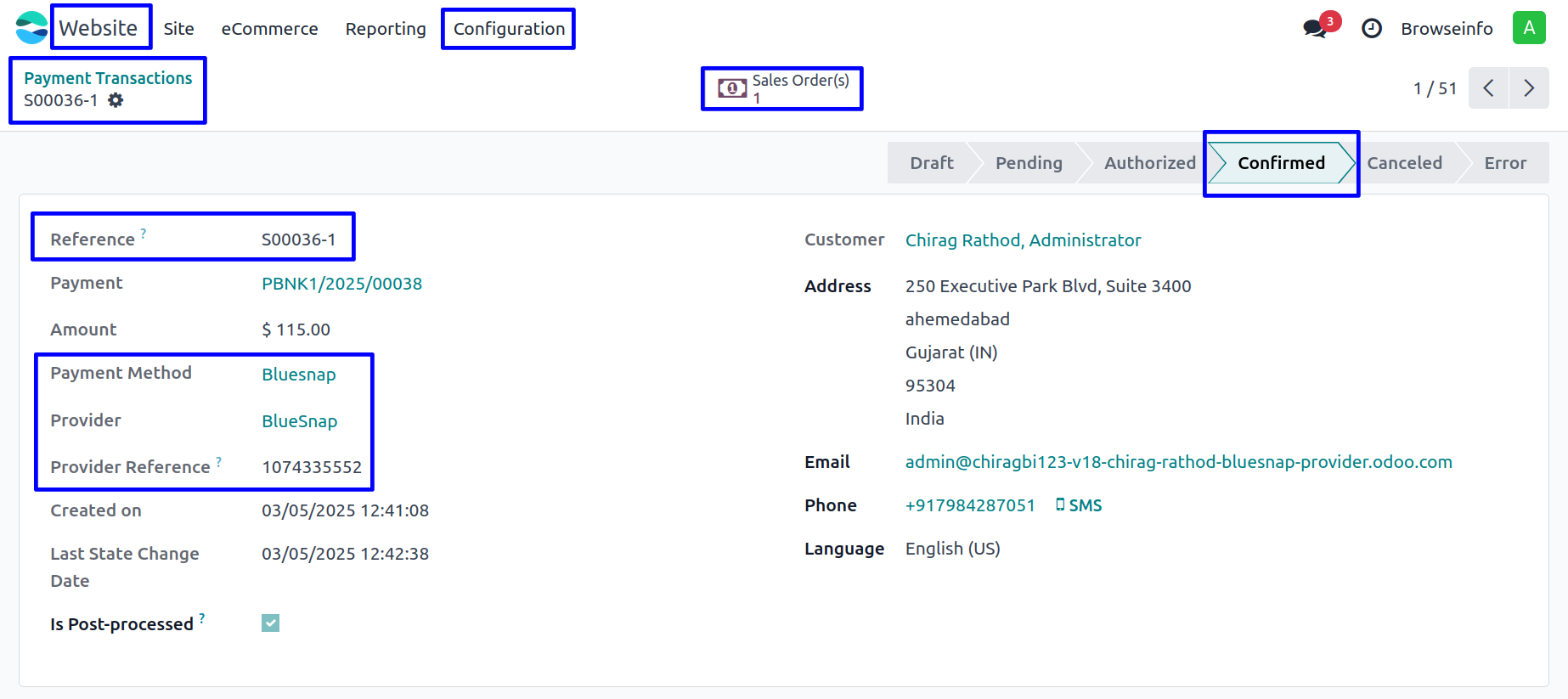 BlueSnap Payment Acquirer for Odoo enables a secure and seamless integration between Odoo and the BlueSnap payment gateway, allowing businesses to accept global payments directly within the platform. It supports multiple payment methods, including cards, digital wallets, and local payment options, while leveraging intelligent payment routing and industry-standard security to reduce payment failures and improve authorization rates. With automatic payment status updates and smooth transaction processing, the integration enhances cash flow visibility, simplifies operations, and helps businesses expand into international markets efficiently.