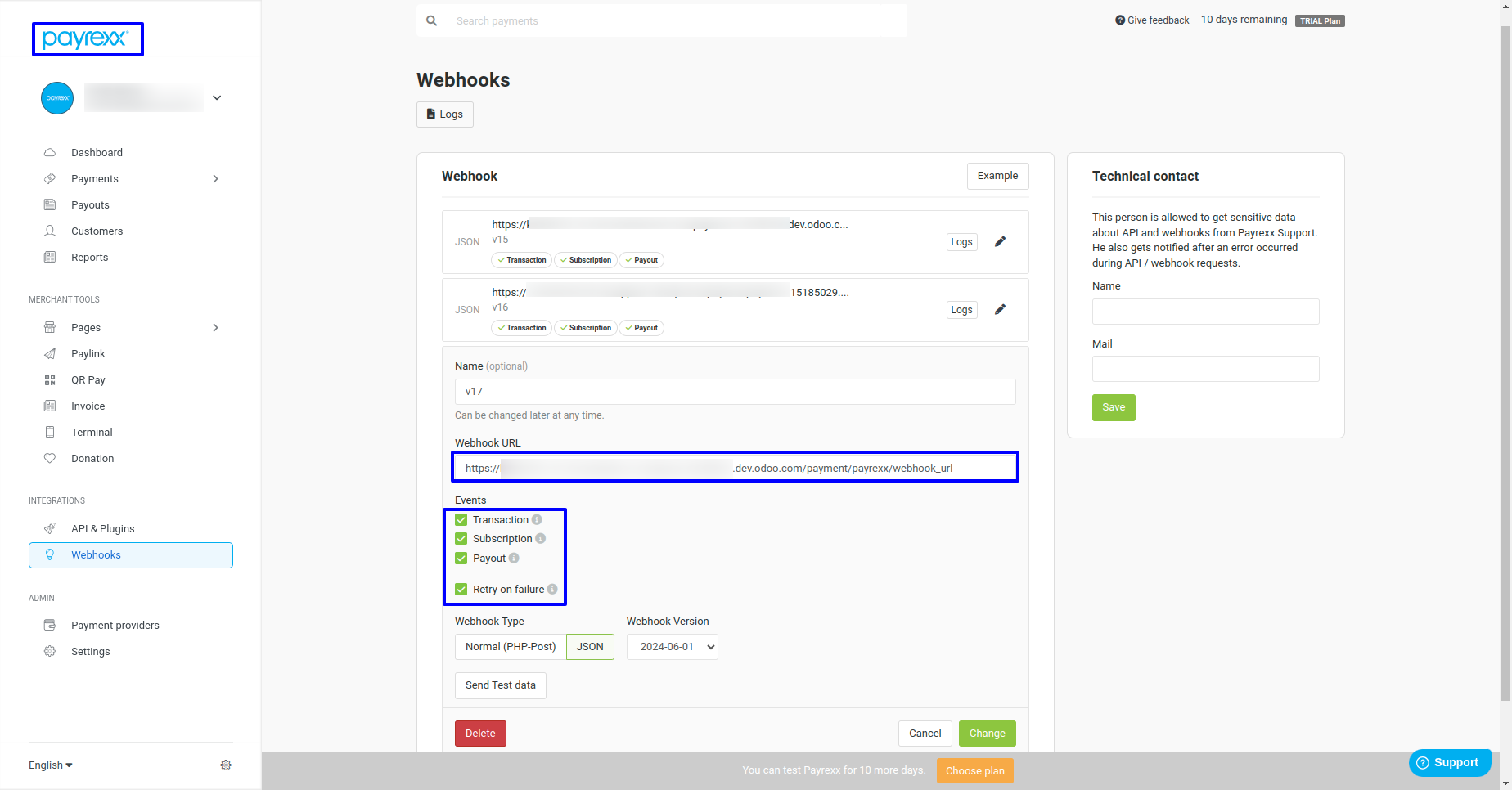 User need to set payrexx API key and webhook URL.