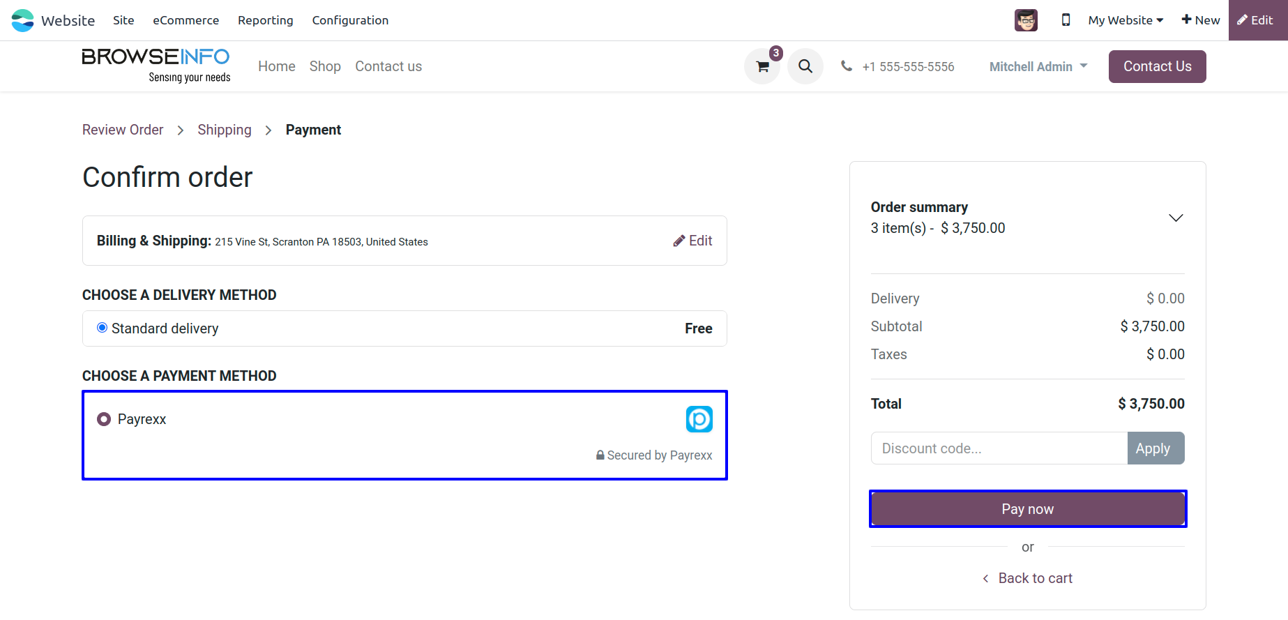 User can choose Payrexx payment method.