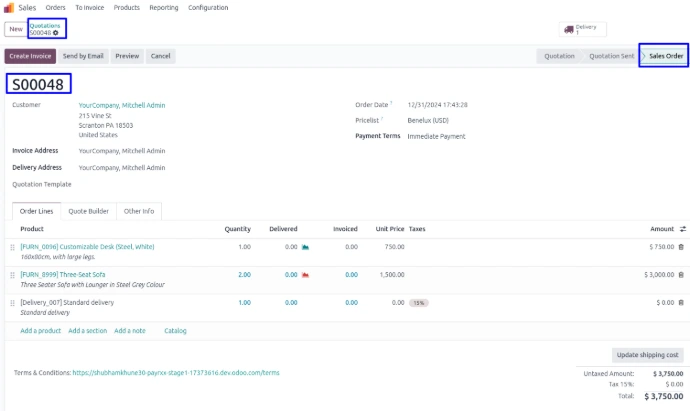 Fig. shows the sale order with Grand Total of ordered products and payment detail.