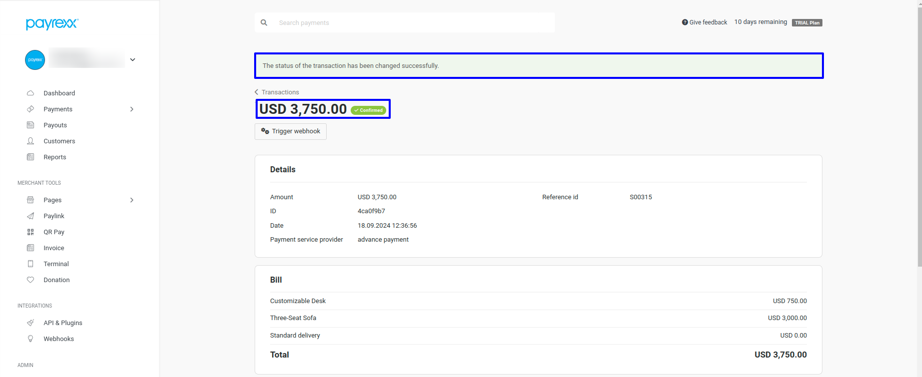 Payment Transaction in Payrexx