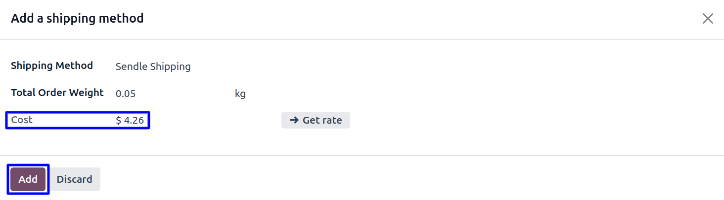 User can see the rate of shipping service and click on "Add" button.