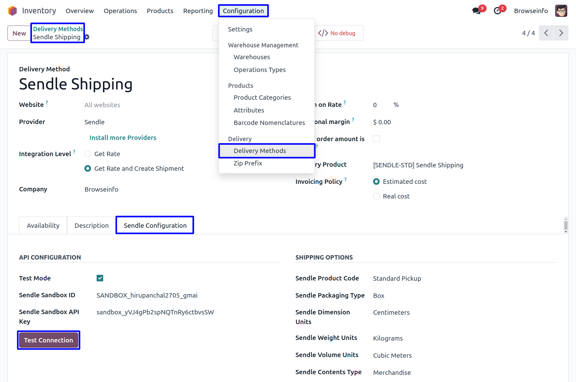 Sendle Delivery Method Configuration