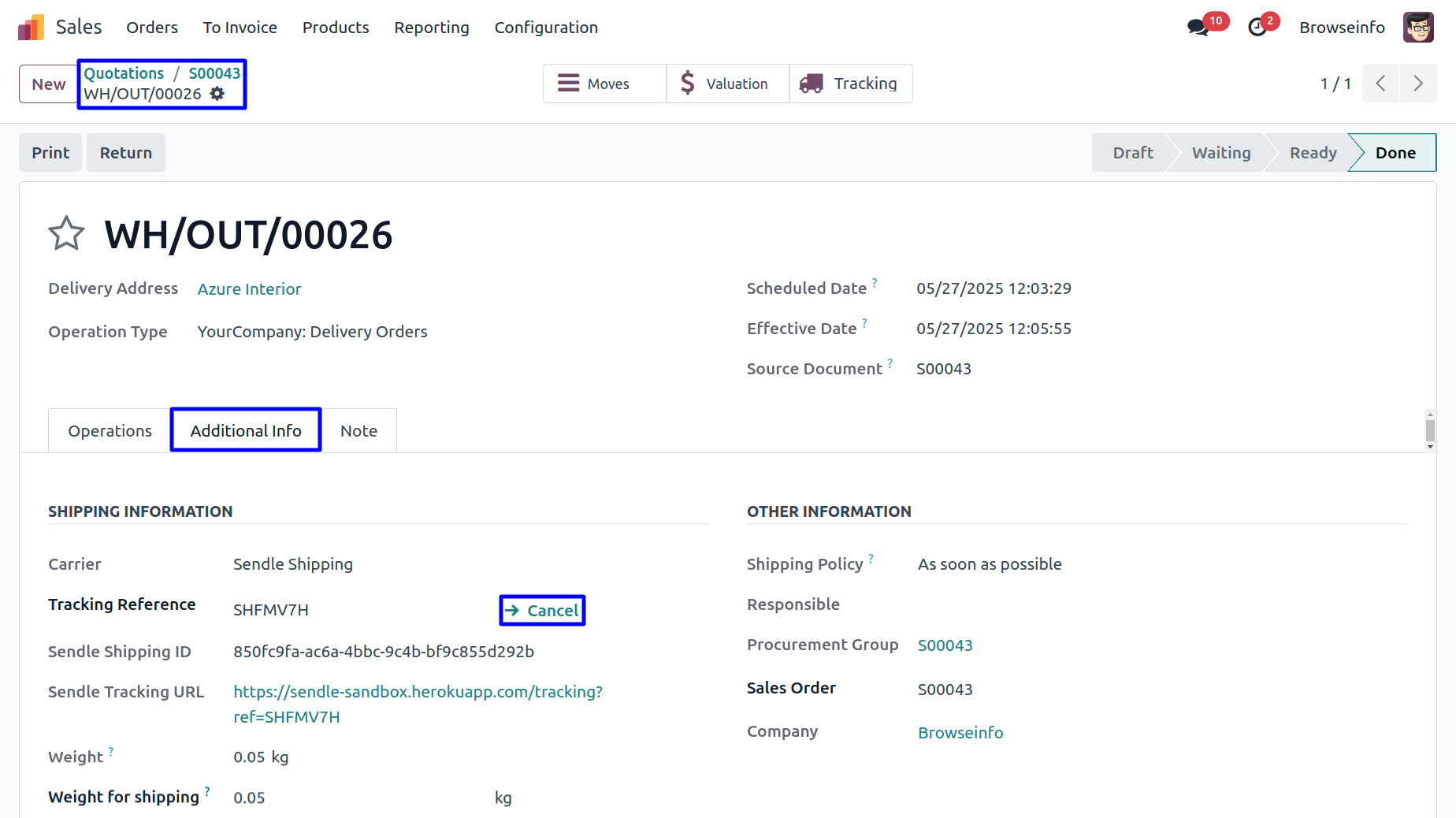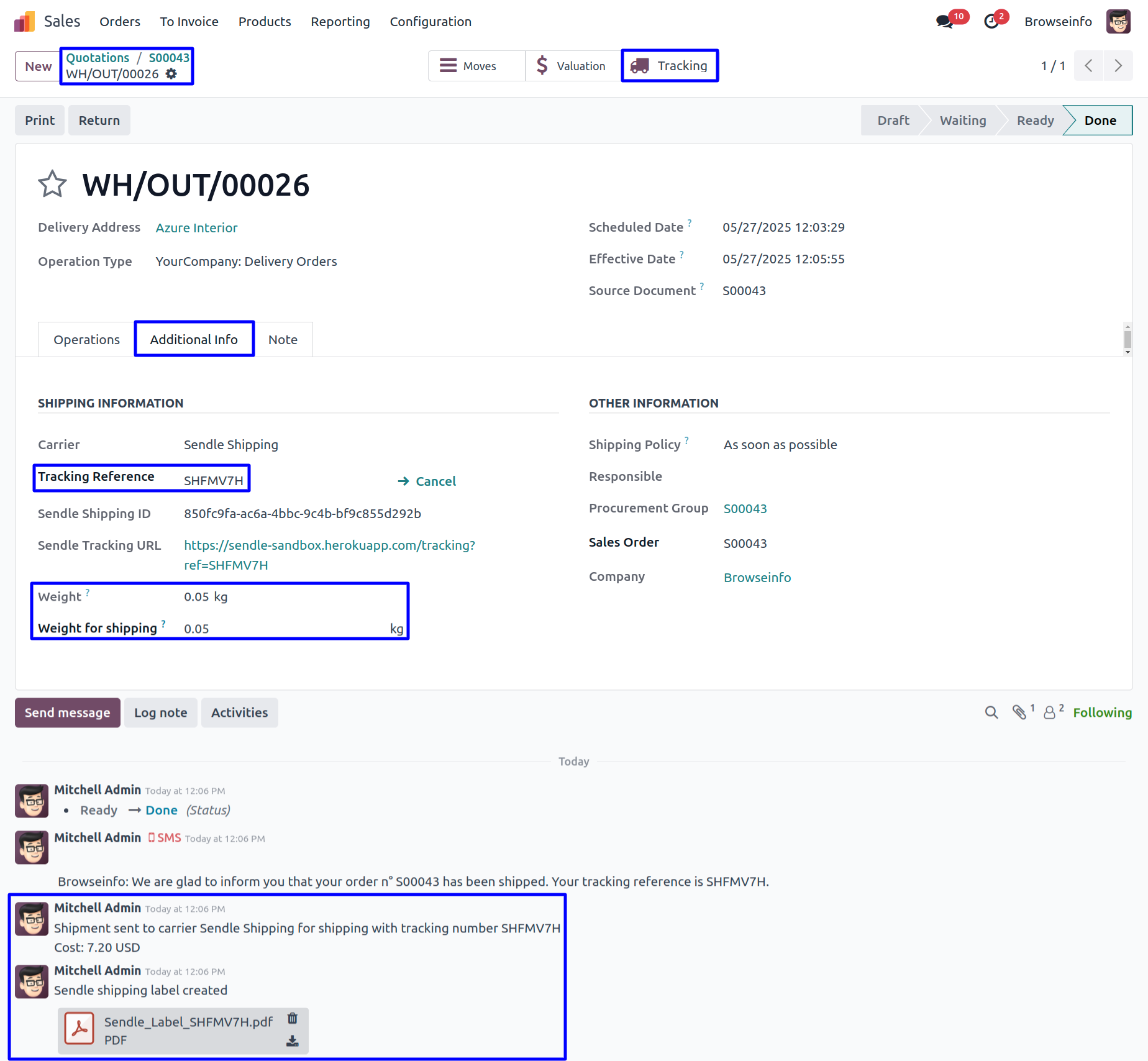Provides tracking updates within Odoo for all shipments made via Sendle.