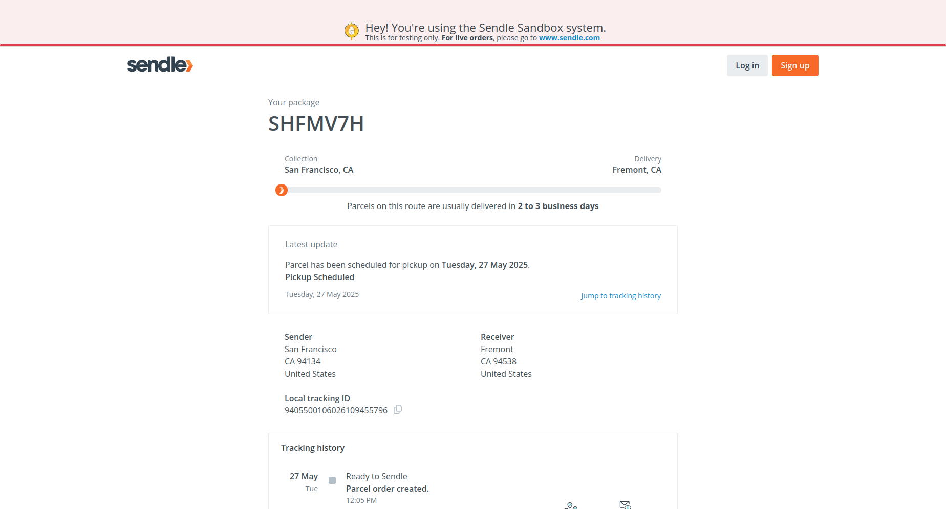 After clicking on tracking button user will be redirected to Sendle tracking page.