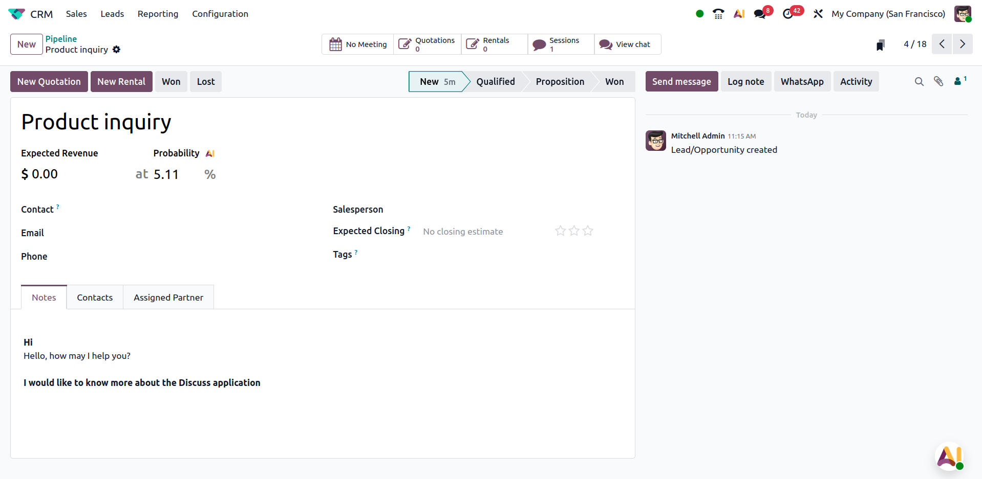 In Odoo19, the Discuss module becomes more actionable by allowing users to convert chat messages directly into CRM leads. No need to switch apps—important sales conversations in chats can instantly generate opportunities.