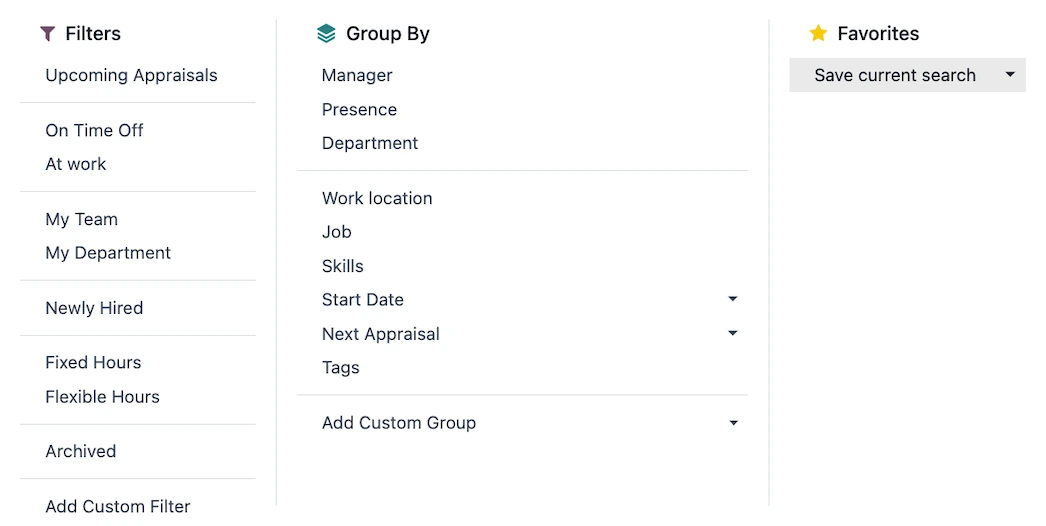 Get a bird's eye view of every department before zooming in on the details. Sort employees by working hours, job title, even contract status to get a full picture of your team from every possible angle.
