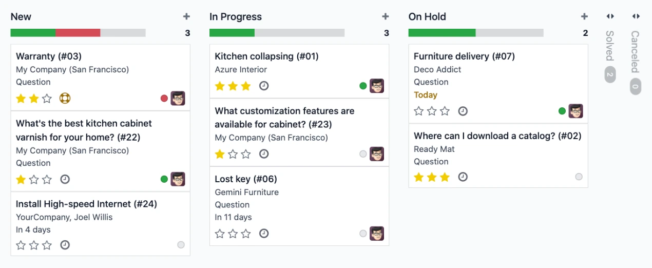 Organize your tickets the way you want with the amazing kanban view.